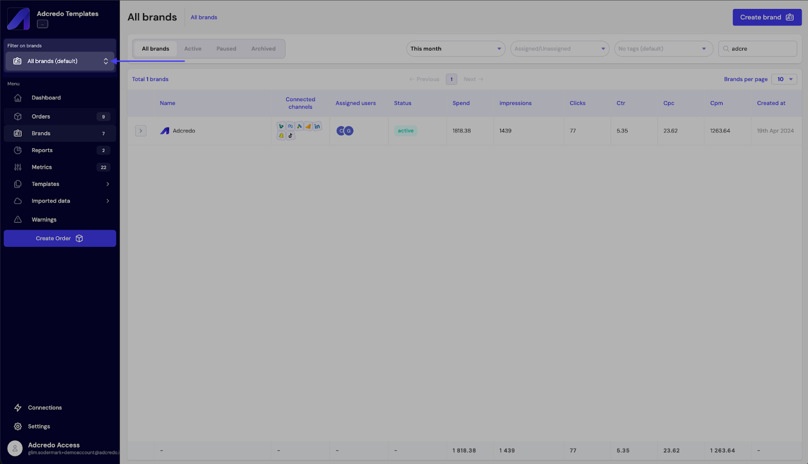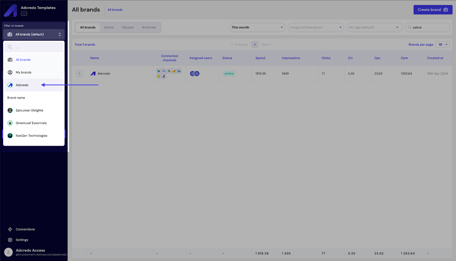 - A specific Brand – focuses everything in Adcredo on that Brand