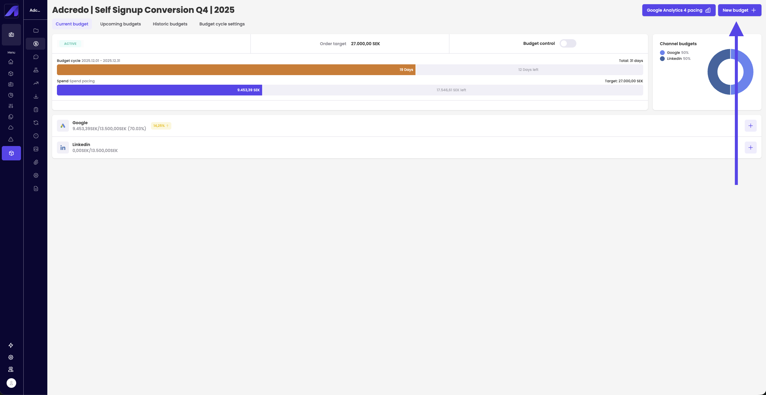 - Adcredo will then use 110 € as the target when it adjusts and manages the campaign budgets for that next cycle.